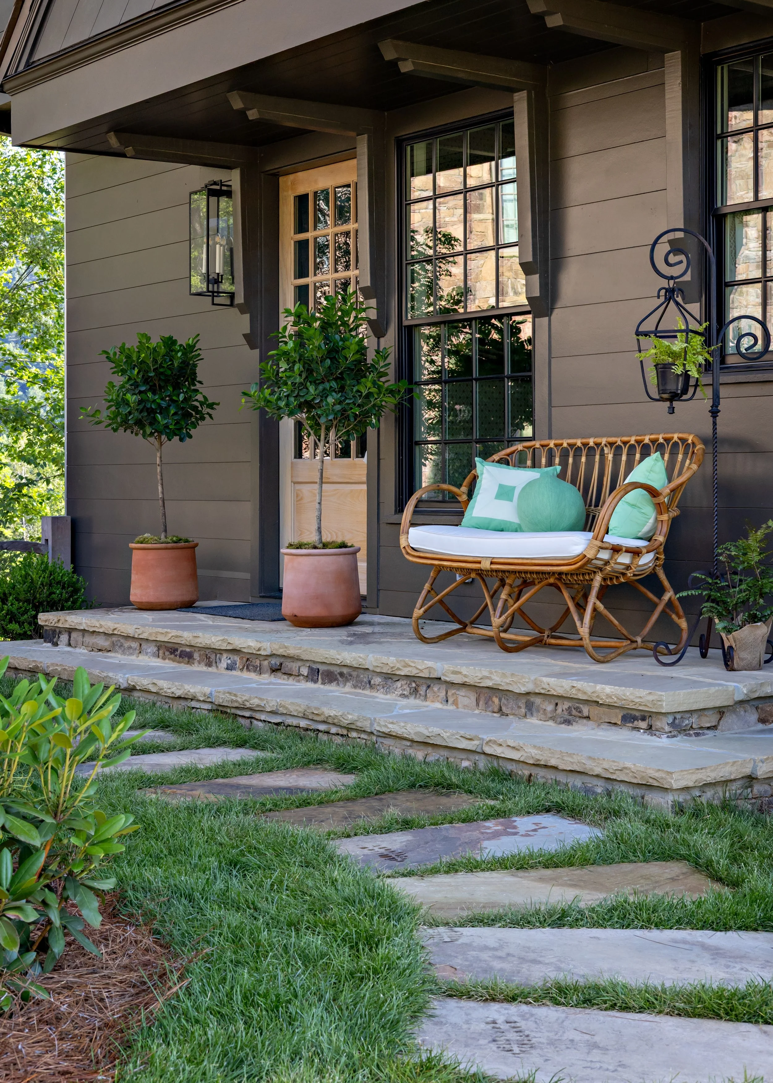 The powder bath echoes the outdoors with the “Pine Needles” wallpaper and fabric. Vintage bamboo pieces give provenance to the room and provide for accessories such as the Staffordshire lamps, hand towels etc.