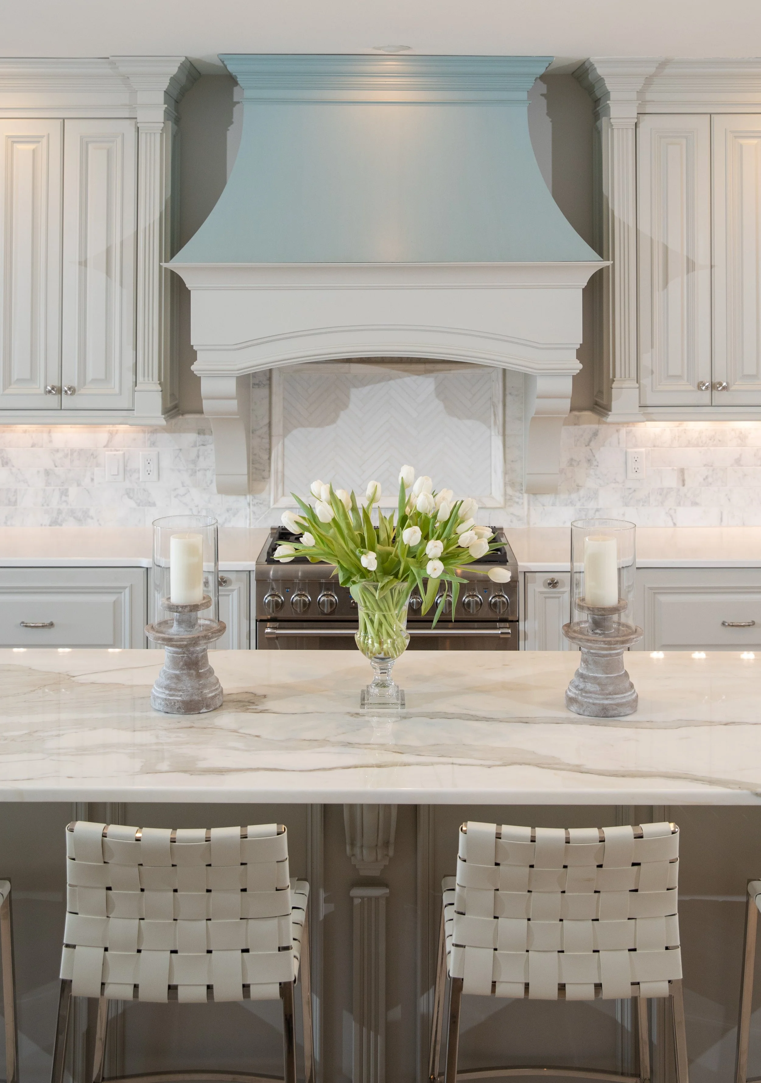 I love to use white tulips because they look fresh and clean in any setting.