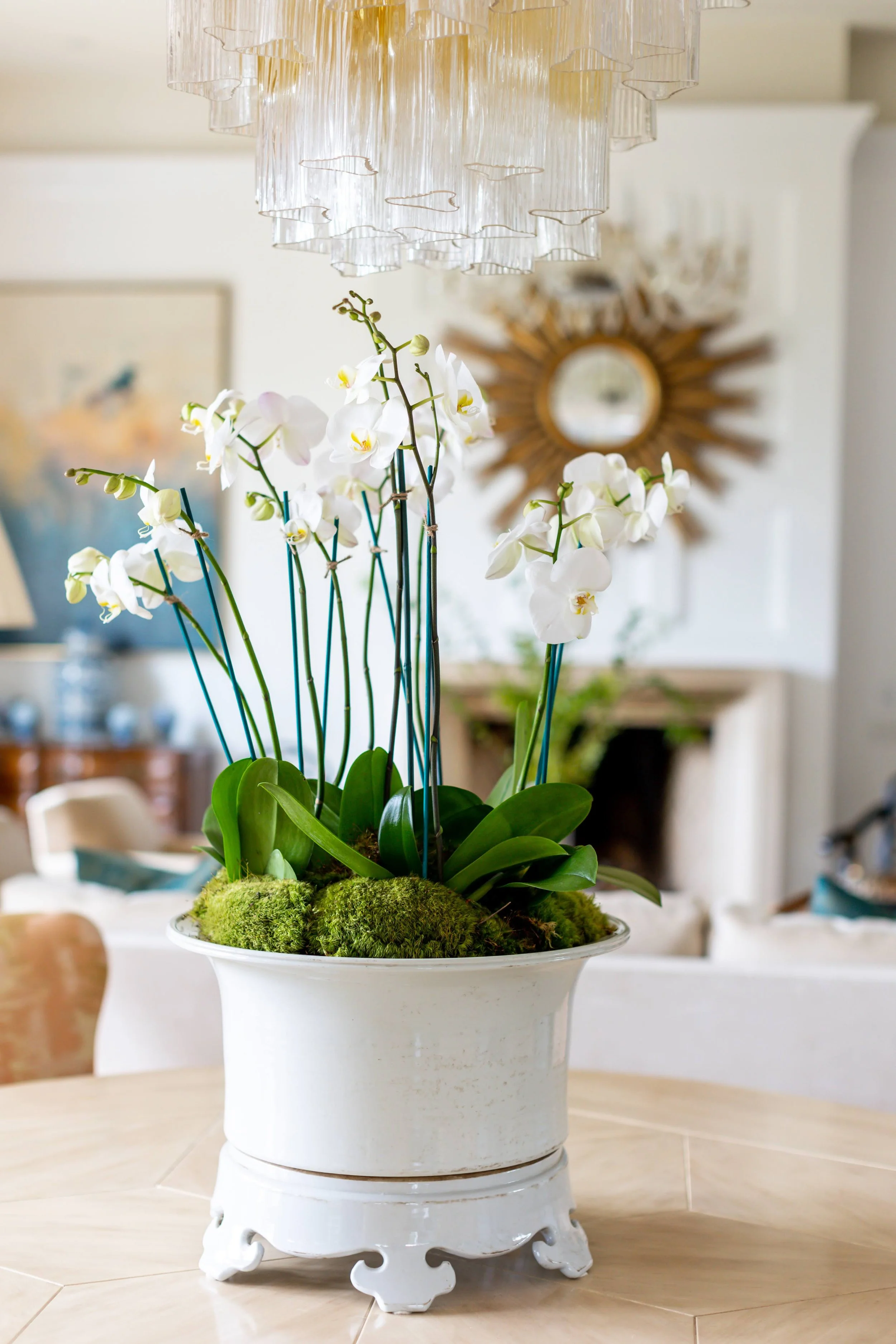 White orchids and ferns also add tranquil texture and color to your rooms.
